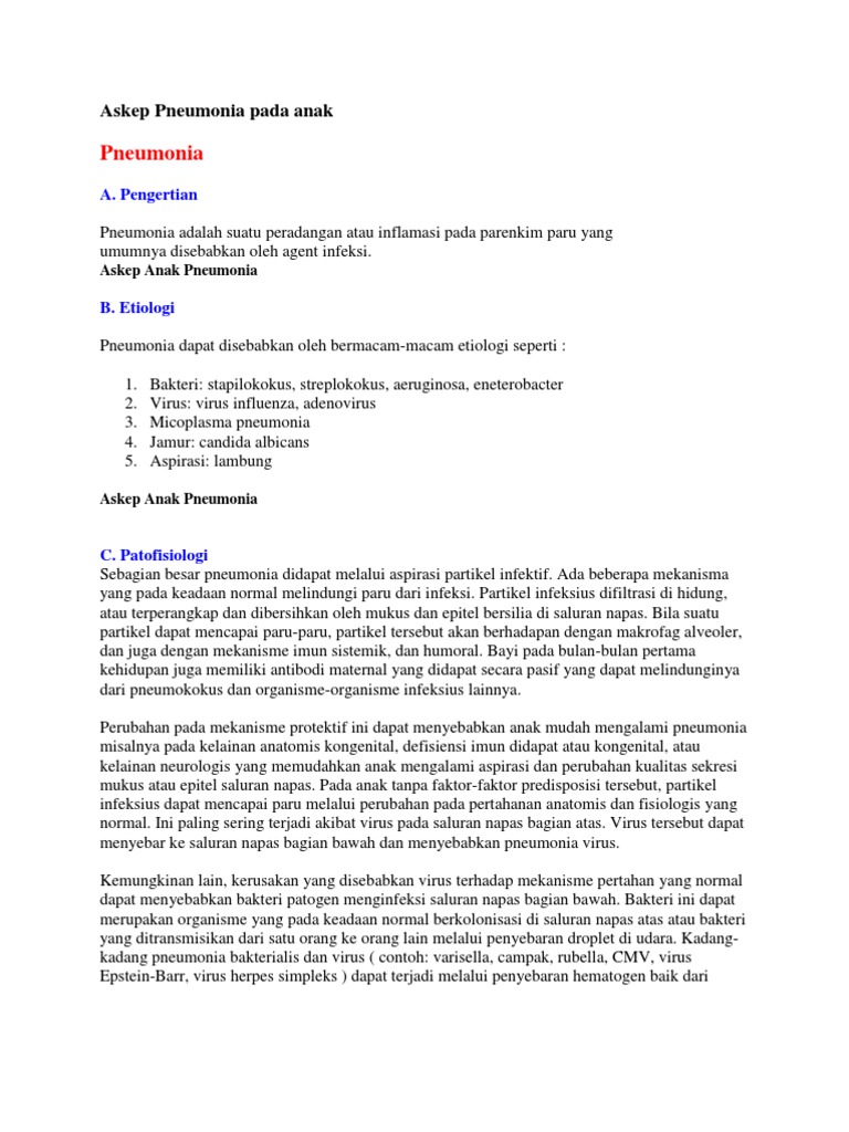 Contoh asuhan keperawatan pneumonia. Untuk mengetahui asuhan keperawatan pada pasien ny. Barbara engram 1998 rencana asuhan keperawatan medikal bedah jilid i peneribit buku kedokteran egc jakarta. Asuhan keperawatan pada pasien dengan pneumonia. S dengan pneumonia yang meliputi pengkajian diagnosa intervensi implementasi evaluasi keperawatan serta pendokumentasian asuahan keperawatan. Asuhan keperawatan anak dengan demam berdarah deng. Setelah dilakukan asuhan keperawatan 3 x 24 jam didapatkan hasil ketidakefektifan bersihan jalan napas teratasi sebagian pola napas tidak efektif.