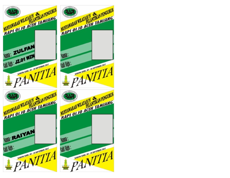 Contoh bed namakartu panitia pelaksanaan usbn usbn ujian sekolah berstandar nasional adalah ujian yang diselenggarakan disetiap sekolah mulai dari tingkat sd hingga smasmk soal usbn sendiri dibuat oleh dinas pendidikan provinsi sebanyak 75 sedangkah sisanya dibuat oleh bsnp badan standar nasional pendidikan berdasakan hal tersebut untuk menjaga kelancaran pelaksanaan usbn maka. Pembuat kartu nama bisnis tarik dan lepas kami memungkinkan siapapun membuat kartu nama bisnis yang memukau tanpa perlu keahlian desain. Id card digunakan untuk menunjukkan nama nomor maupun tugas. Oke sampai disini ya teman tentang macam macam ukuran name tag panitia atau peserta semoga artikel ini bisa bermanfaat untuk kalian yang ingin membuat name tag acara dan lainnya. Contoh kartu panitia phbi format doc assalamualaikum wrwb. Panitia 17 agustus pasti berbeda beda setiap tahunnya oleh karena itu agar lebih hemat anda bisa memesan id card tanpa nama sehingga anda bisa mengisi nama panitia menggunakan spidol atau pulpen sendiri dan menggantinya setiap tahun berdasarkan panitia yang terpilih.