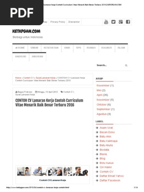 Cv merupakan dokumen penting melamar pekerjaan. Disini sudah saya buatkan layout atau template contoh cv pdf yang dapat kamu download untuk melamar pekerjaan baik itu di perusahaan perbankan seperti rekrutmen bank bca bank indonesia perusahaan swasta maupun perusahaan bumn dan instansi.