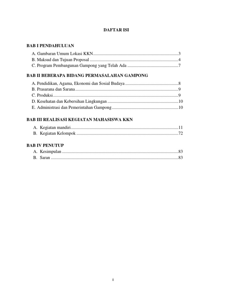 Contoh daftar isi proposal. Download contoh daftar isi laporan. Kamu cukup susun bab sub bab dan penomeran halaman sesuai dengan letak halaman asli yang ada di skripsi laporan atau proposal. Pendahuluan 11 latar belakang masalah 12 rumusan masalah 13 batasan masalah 14 tujuan penelitian 15 manfaat. Contoh daftar isi makalah daftar isi adalah bagian dari sebuah karya tulis baik berupa skripsi laporan dan karya tulis lainnya termasuk makalah baik makalah ilmiah maupun makalah biasa dimana pada daftar isi ini menggambarkan apa saja yang menjadi pembahasan dari makalah atau karya tulis lainnya. Yakni berfungsi membantu pembaca untuk lebih mudah menemukan topik yang diinginkan dalam suatu tulisan. Contoh daftar isi yang baik dan benar untuk laporan makalah proposal menyusun laporan ppl atau proposal permohonan dana kadang membuat kita bingung mencari contoh daftar isi laporan prakerin yang benar atau daftar isi makalah yang baik untuk dijadikan sebagai acuan dalam penulisan format daftar isi tersebut.