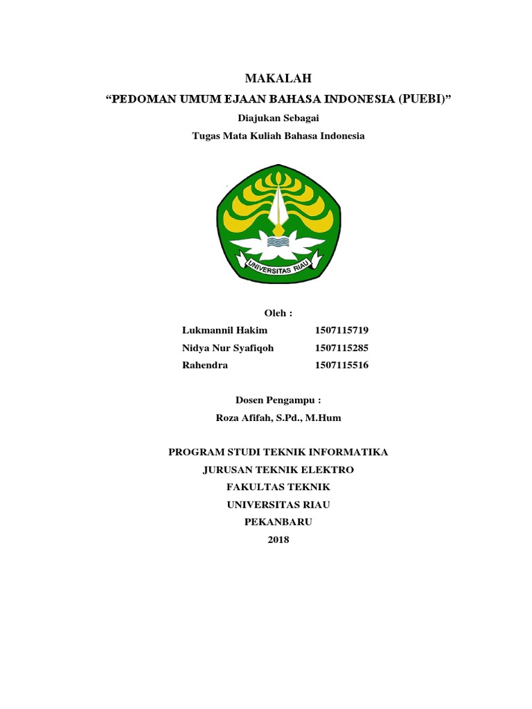 Makalah ini sebagai tugas dalam mata kuliah bahasa indonesia. Dimulai dari ejaan van ophuysen pada 1901 menjadi ejaan republik atau ejaan soewandi pada tahun 1947 hingga menghasilkan ejaan bahasa indonesia yang disempurnakan pada tahun 1972 yang mana dipergunakan hingga saat ini oleh seluruh masyrakat indonesia. Dari sabang sampai merauke berjajar pulau pulau d. Ejaan van ophuijsen ditetapkan tahun 1901 ejaan ini menetapkan bahasa melayu dengan huruf latin. Kata ulang ditulis penuh dengan mengulang unsur unsurnya. Fungsi ejaan dalam bahasa indonesia a.