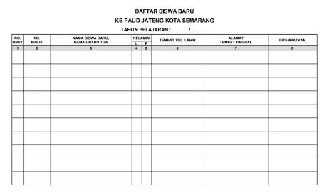 Mungkin yang perlu kita tekankan untuk formulir pendaftran tpa adalah item pada jam kerja ayahibu dan nomor telepon kantor ayahibu. Nama anak tempattanggal lahir jenis kelamin nama orang tuawali alamat keterangan kelompok yang dimasuki. Pada prinsipnya formulir pendaftran untuk murid tk paud ataupun tpq formatnya hampir sama. Berikut ini adalah contoh format formulir pendaftaran. Biasanya buku pendaftaran siswa baru terdiri dari beberapa kolom yang memuat. Begitu juga dengan format formulir pendaftaran untuk murid di taman penitipan anak tpa.