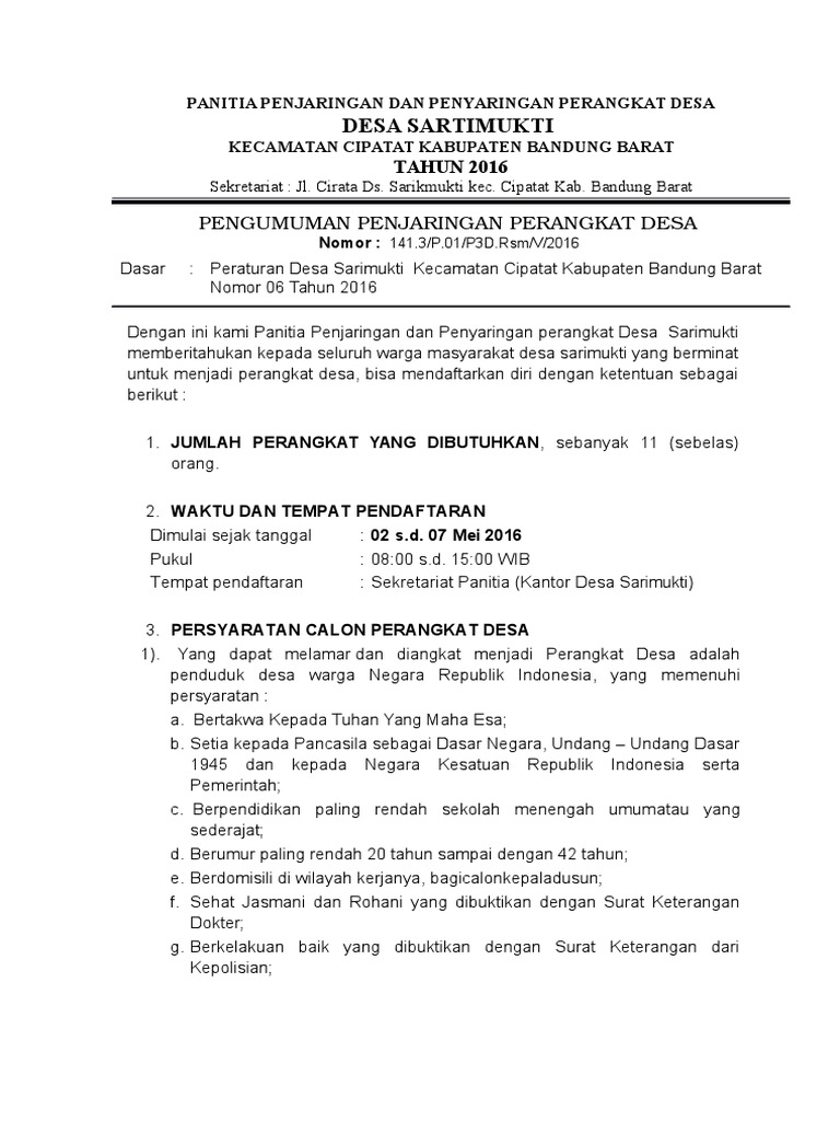 Contoh formulir pendaftaran perangkat desa. Setia dan taat kepada pancasila undang undang dasar 1945 negara dan pemerintah republik. Bertaqwa kepada tuhan yang maha esa yang dibuat oleh yang bersangkutan bermaterai cukup dan diketahui oleh pejabat yang berwenang. Persyaratan calon perangkat desa perangkat desa diangkat dari warga desa yang memenuhi dan melengkapi persyaratan. Beberapa urusan itu di antaranya ialah kop surat. Pasal 4 ayat 3 dan. Kepala desa atau sebutan lain adalah pejabat pemerintah desa yang mempunyai wewenang tugas dan kewajiban untuk.