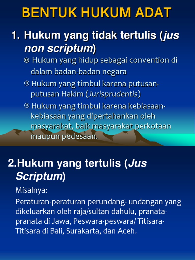 Pengertian hukum adat menurut para ahli ciri ciri hukum adat unsur unsur hukum adat dan contoh hukum adat terlengkap hukum adat adalah sistem hukum yang dikenal dalam lingkungan kehidupan sosial di indonesia dan negara lain seperti jepang tiongkok dan india. Dalam banyak meskipun tidak semua contoh hukum adat akan memiliki putusan pengadilan mendukung dan hukum kasus yang telah berkembang dari waktu ke waktu untuk memberikan bobot tambahan untuk aturan mereka sebagai hukum dan juga untuk menunjukkan lintasan evolusi jika ada dalam penafsiran hukum tersebut seperti tujuan konstitusi.