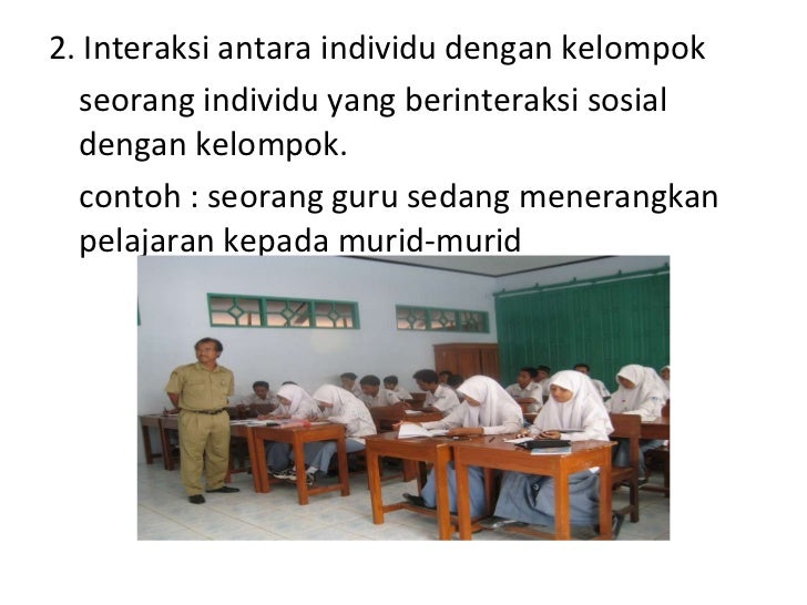 Contoh interaksi individu dengan kelompok. Contoh interaksi sosial interaksi sosial merupakan hubungan timbal balik antara dua individu atau lebihdefinisi interaksi sosial bisa terjadi dimana saja di lingkungan masyarakat. Interaksi sosial adalah sebuah fondasi dari hubungan yang berupa tindakan yang berdasarkan norma atau nilai nilai sosial yang berlaku dan diterapkan oleh masyarakat. Pengertian interaksi sosial adalah berbagai hubungan sosial yang berkaitan dengan hubungan antar individu antar individu dengan kelompok serta kelompok dengan kelompok. Interaksi sosial adalah hubungan timbal balik antara individu manusia dengan individu lainnya antara individu dengan kelompok atau antara kelompok dan individu. Contoh interaksi sosial dalam kehidupan sehari hari dalam hakikatnya manusia adalah makhluk sosial yang tentunya memerlukan hubungan antara individu dengan individu yang lainnya bahkan antara individu dengan kelompok. Selain itu proses sosial merupakan interaksi timbal balik atau disebut sebagai hubungan yang saling mempengaruhi antara manusia yang satu dengan.