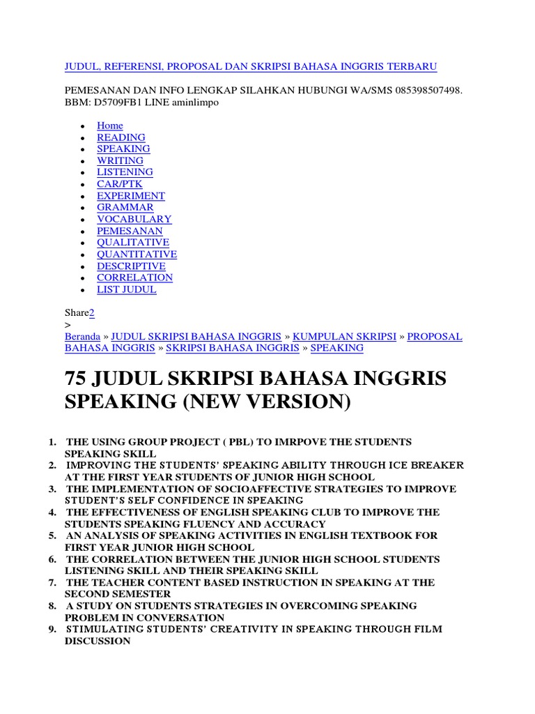 Judul skripsi merupakan hal yang sangat penting. 77 contoh judul skripsi pendidikan bahasa inggris terbaru dan terlengkap hai sahabat sbi yang super kali ini admin akan berbagi daftar judul skripsi pendidikan bahasa inggris.