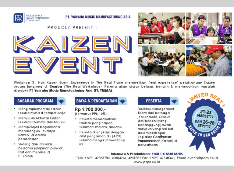 Menyeimbangkan beban kerja harian untuk memastikan bahwa semua orang bekerja secara optimal. Kaizen adalah praktek yang terfokus kepada continuous improvement dari proses dalam manufaktur engineering development dan business management. Untuk melaksakanakan kaizen event di perusahaan non manufaktur yang pertama dilakukan seperti pada awal setiap proyek improvement adalah membentuk tim kerja yang akan segera mengidentifikasi masalah mencari penyelesaian dan menetapkan targetanggota tim ini akan meninggalkan pekerjaan sehari hari mereka selama beberapa hari untuk. Bisa dikurangi 1 lampu untuk tiap 3 paketderet lampu. Harapannya dengan melakukan kegiatan gemba kaizen faktor produksi yang terdiri dari manusia mesin bahan metode standard dan lingkungan kerja akan dapat dipergunakan secara efisien sehingga produktivitas dan kualitas kerja semakin meningkat. Memberikan cross training kepada para karyawan untuk menciptakan alur kerja yang tidak terganggu di saat seseorang tidak berada di tempat.