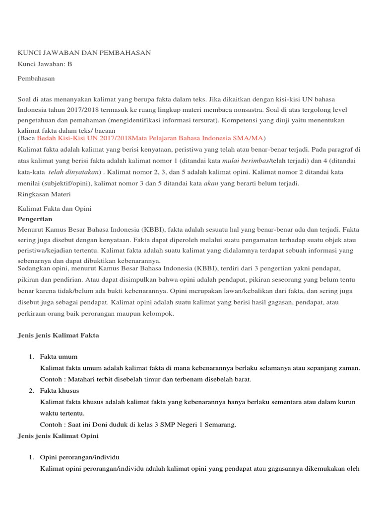Opini adalah salah satu kata yang hampir selalu berdampingan dengan kata fakta dan keduanya memliki perbedaan yang sangat jelas dan artikel kali ini tujuannya juga untuk menjelaskan keduanya baik dari sisi pengertian maupun melalui contoh contoh kalimat opini dan fakta untuk membedakan antara keduanya. Karena memang jenis kalimat ini saling bertolak belakang. Kalimat opini umum kalimat opini umum adalah kalimat pendapat yang telah diakui oleh mayoritas orang namun belum ada pembuktian ilmiah yang dipercaya mengenai hal tersebut.