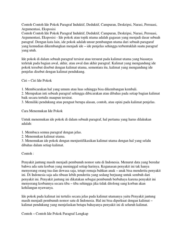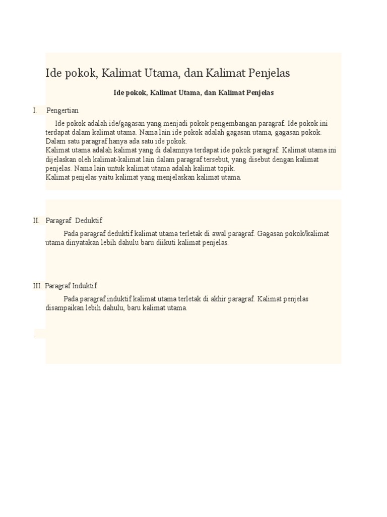 Contoh kalimat utama di awal paragraf deduktif memasuki arus globalisasi beberapa hal terkait iptek yang semakin canggih menjadi boomerang bagi masyarakat indonesia. Kalimat utama dan kalimat penjelas adalah unsur unsur penting dalam jenis jenis paragraf terutama untuk paragraf induktif paragraf deduktif paragraf ineratif dan paragraf campurankalimat utama sendiri merupakan kalimat yang berisi pokok utama sebuah paragraf.