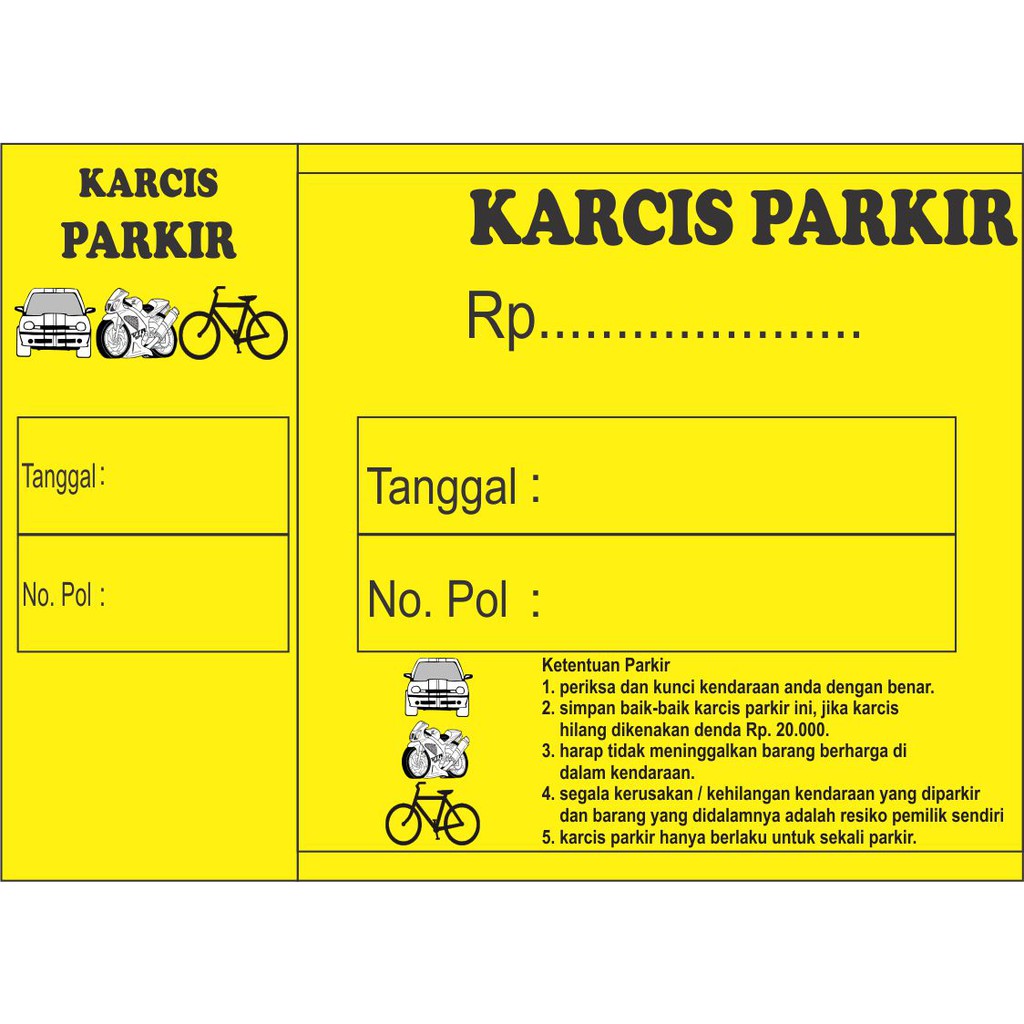 Contoh karcis parkir motor. Cara praktis desain karcis parkir dengan mss world assalamu alaikum warahmatullahi wabarokatuh di awali ucap syukur ke hadirat allah swtyang telah memberikan kita berbagai nikmat yang tak terhitung nilai dan banyaknya nikmat yang allah berikan kepada kita semua. Barrier gate atau palang parkir 3. 344 pm karcis parkir kartu parkir tiket tiket parkir 5 comments percetakan bekasi printing menerima pemesanan cetak tiket parkir karcis parkir bw dan full colour. Yang terpenting melakukan semua di atas sebagai contoh seorang pemimpin dan panutan bagi setiap karyawan di lokasi. Karcis digunakan untuk berbagai keperluan seperti karcis parkir pada sebuah acara misalnya pengajian pertandingan sepakbola dan lain sebagainya. Demikian prosedur yang harus dilaksanakan oleh seorang koordinator parkir di lokasi di luar prosedur yang telah baku dari kantor pusat.