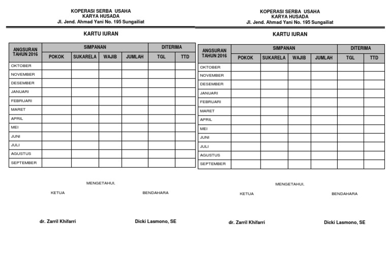 Contoh kartu angsuran koperasi. 10000dikenakan jasa pelayanan rp. Tabel pinjaman koperasi swamitra 2020. 1 bilamana koperasi dibubarkan dan pada penyelesaiannya ternyata bahwa kekayaan koperasi tidak mencukupi untuk melunasi segala perjanjian dan kewajibannya maka sekalian anggota diwajibkan menanggung kerugian masing masing terbatas pada simpanan pokok dan simpanan wajib yang seharusnya telah dibayar oleh anggota yang bersangkutan pada koperasi serta modal penyertaan yang dimilikinya. Setiap koperasi harus memiliki anggota yang cakap dan mampu untuk melakukan setiap tanggung jawab dalam kegiatan sehari hari koperasi. 150 x pokok x angsuran. Contoh kartu anggota serikat pekerja.