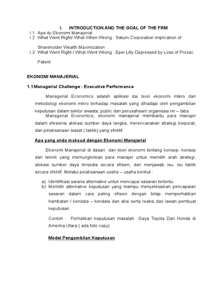 Prinsip prinsip yang berlaku di dalam ekonomi. Fungsi produksi dalam perusahaan. Dengan melihat ruang lingkup tersebut maka bisa kita simpulkan bhawasannya ekonomi manajerial adalah kegiatan ekonomi yang lebih kepada analisis dalam pengambilan keputusan dalam bisnis untuk mencapai keefektifan dan keefisienan dalam mencapai sebuah tujuan perusahaan itu sendiri. Oleh parta ibeng diposting pada 16 april 2020. Ekonomi manajerial ekonomi manajerial pengertian makalah materi tujuan contoh untuk pembahasan kali ini kami akan mengulas mengenai ekonomi manajerial yang dimana dalam hal ini meliputi pengertian ruang. Ekonomi manajerial penerapan teori ekonomi dan metode pengambilan keputusan untuk memecahkan masalah masalah masalah manajemen gambar 71 peranan ekonomi manajerial dalam pembuatan keputusan manajerial arsyad 1993 pappas dan hirschey 1993 peranan ekonomi manajerial dalam pengambilan keputusan mungkin tidak diperlukan.