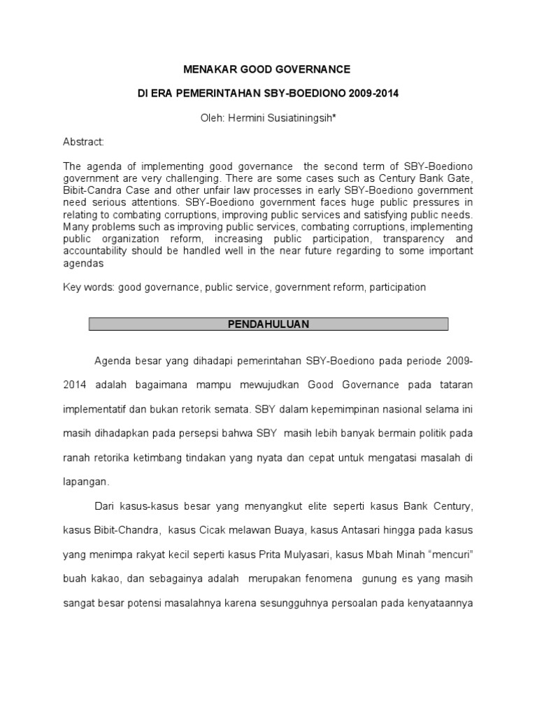Sepertinya persoalan hukum di indonesia telah merasuk hingga ke sendi sendi dan mungkin telah menjadi kebiasaan yang dianggap wajar di negeri ini. Contoh kasus pelanggaran good corporate governance menjadi topik yang kali ini akan kita bahas. Akan tetapi jika dilihat dari perkembangan reformasi. Good governance di indonesia duration. Good corporate governance atau yang lebih dikenal dengan singkatan gcg merupakan suatu sistem input proses output dan seperangkat peraturan yang mengatur hubungan antara berbagai. Dari semua permasalahan good governance yang disebutkan di atas permasalahan yang paling banyak terjadi di indonesia adalah di bidang integritas pelaku pemerintahan khususnya dalam hal praktik korupsi.
