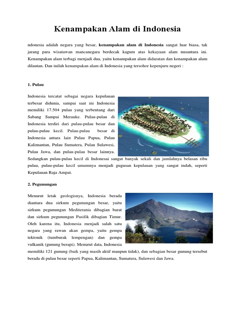 Kenampakan alam adalah segala sesuatu di alam yang merupakan hasil dari peristiwa alam dan bukan merupakan akibat aktivitas manusia. Contoh lainnya dari kenampakan buatan yang bentuknya seperi alam adalah perkebunan. Kenampakan buatan terbagi menjadi menjadi dua yaitu kenmpakan buatan yang terlihat seperti kenampakan alam dan kenampakan buatan yang tidak seperti alam. Sebaliknya jika kenampakan atau bentuk muka bumi yang dibuat oleh manusia disebut sebagai kenampakan alam buatan atau diseingkat dengan kenampakan buatan. Contoh kenampakan buatan dan manfaatnya. Kenampakan alam dan kenampakan buatan di indonesia rizki siddiq nugraha 2017 07 13t2039000800 50 stars based on 35 reviews kenampakan alam dan kenampakan buatan di indonesia karya.