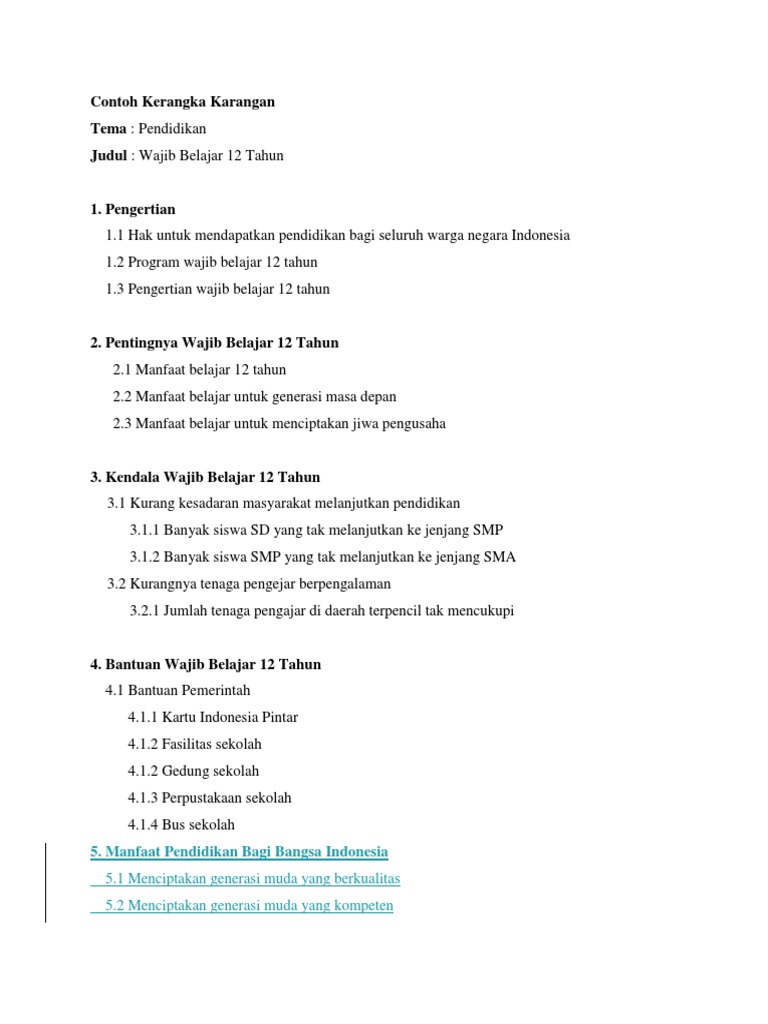 Baiklah untuk postingan hari ini kami tetap bakal mengulas mengenai bahasa indonesia yaitu tutorial membikin kerangka karangan dan contohnya. Kerangka karangan pengertian manfaat bentuk pola dan langkahnya hallo sahabat pembaca yang budiman pada kesempatan yang berbahagia kali ini kita akan membahas mekalah tentang kerangka karangan pengertian manfaat bentuk pola langkah dan contohnya lengkapuntuk itu mari langsung saja kita simak uraian matetrinya dibawah berikut ini. Karakteristik dalam karangan narasi adalah adanya beberapa tahapan seperti orientasi klimaks reorientasi konflik dan penyelesaian masalah. By ahmad arifin posted on may 7 2020 may 7 2020. Untuk pembahasan kali ini kami akan memberikan ulasan mengenai contoh karangan narasi yang dimana dalam hal ini meliputi contoh tentang pendidikan liburan lingkungan guru sekolah dan pengalaman pribadi nah agar lebih dapat memahami dan mengerti simak ulasan selengkapnya dibawah ini. Contoh karangan persuasi tentang pendidikan dalam dunia tulis menulis kita telah mengenal berbagai macam bentuk karangan.
