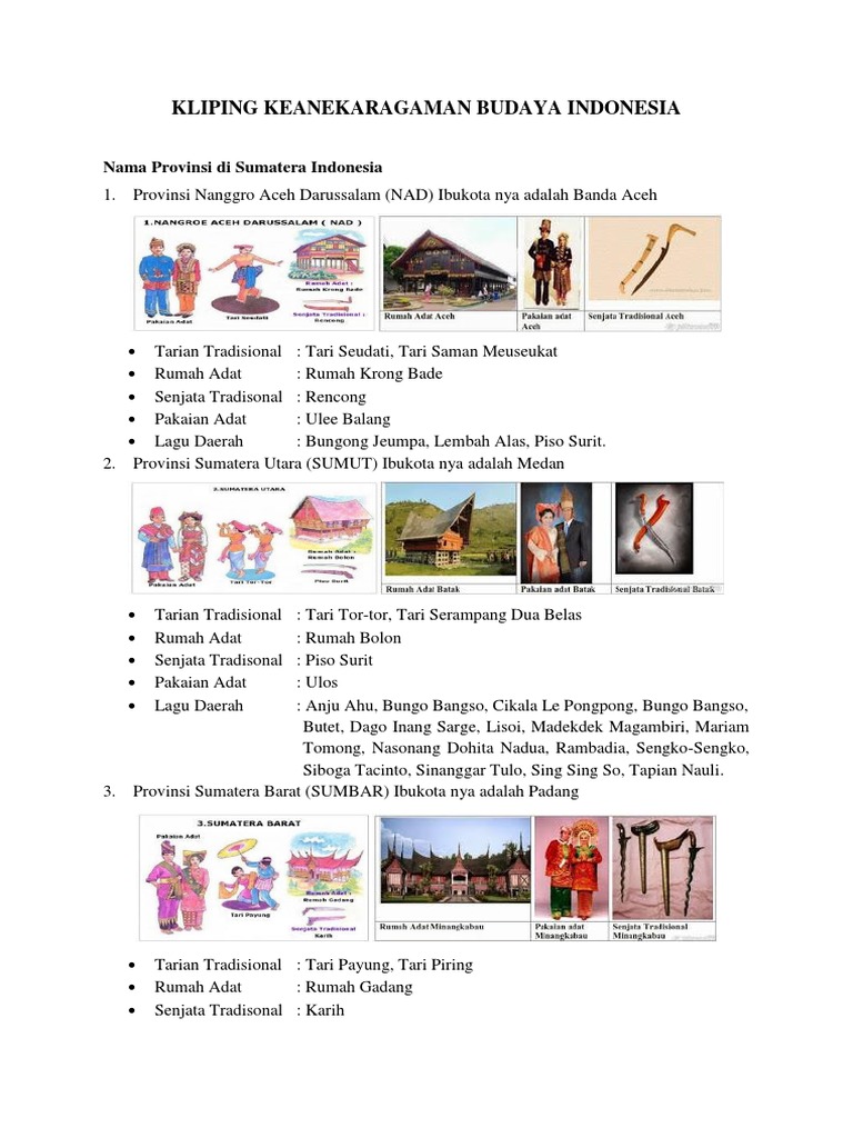 Contoh kliping keragaman budaya indonesia. Keragaman budaya indonesia merupakan negara kesatuan yang penuh dengan keberagaman dan kekayaanindonesia terdiri atas beraneka ragam suku budaya ras daerah kepercayaan agama dan lain lain. Kliping keragaman budaya indonesia 34 provinsi indonesia sangatlah kaya dengan keaneka ragaman istiadat pun budaya tentu saja hal tersebut disebabkan oleh distrik indonesia yang berbentuk kepulauan sehingga meningkatkan kekayaan dan keanekaragaman kebiasaan masing masing pulau. Bahkan guna satu pulau ada bermacam macam atau keanekaragaman kebiasaan pada masing masing provinsi. Contoh contoh keragaman budaya indonesia yang kaya. Dari banyaknya keragaman yang ada di indonesia keragaman budaya memaksimalkan salah satu sisi keragaman yang paling menarik untuk dibahas. Pengertian seni rupa jenis jenis seni rupa.