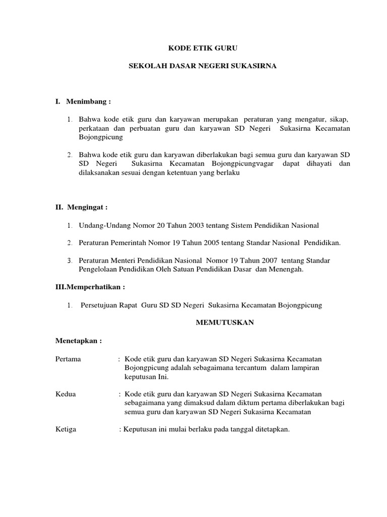 Contoh kode etik guru. Buku kode etik guru jurnal. Didalam mengajar melatih membimbing dari para peserta didiknya guru harus bisa bersikap serta berperilaku dengan profesional. Hubungan guru dengan para peserta didiknya. Contoh kasus pelanggaran kode etik guru. Kami guru indonesia bersatu dalam wadah organisasi perjuangan persatuan guru republik indonesia membina persatuan dan kesatuan bangsa yang berwatak kekeluargaankami guru indonesia menjunjung tinggi kode etik guru indonesia sebagai pedoman tingkah laku profesi dalam pengabdian terhadap bangsa negara serta kemanusiaan. Sebuah lembaga pendidikan sekolah harus selalu menjaga dan meningkatkan kepatuhan terhadap kode etik yang ada di sekolah tersebut.