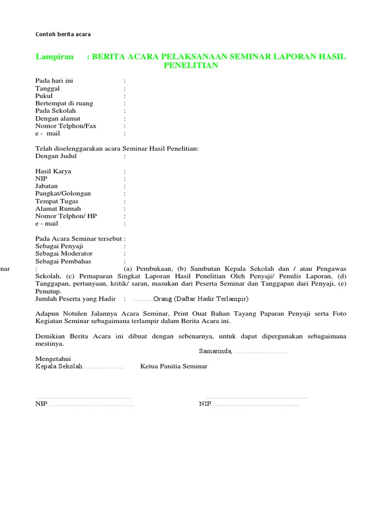 Contoh laporan hasil kegiatan seminar. Tahun dua ribu empat belas telah diadakan kegiatan seminar laporan hasil penelitian sekolah dengan judul pengaruh supervisi kepala sekolah dengan teknik kelompok meeting terhadap peningkatan prestasi kerja guru sd negeri i gondangwayang semester ii tahun pelajaran 20132014 karya kosam supriyono spdsd kepala sdn i. Laporan ini kami buat sebagai sarana pertanggung jawaban atas kegiatan seminar sehari yang telah terselengarakan dalam laporan ini pula kami telah paparkan secara jelas seluruh kegiatan tersebut baik sebelum acara maupun sesudah acara di selengarakan guna mengadakan evaluasi terhadap kegiatan tersebut. Ada beberapa hal yang harus diperhatikan si penulis laporan dalam pembuatan laporan. Pada hari ini pada hari ini rabutujuh belas september. Contoh laporan kegiatan seminar laporan kegiatan seminar merupakan salah satu bentuk pertanggung jawaban yang biasanya dibuat sebagai bukti bahwa kita sebagai pembuat laporan benar benar telah melakukan atau mengikuti apa yang tertulis di dalam laporan tersebut yang dalam hal ini adalah kegiatan seminar. Contoh notulen yang benar untuk anda yang terbiasa melakukan kegiatan berorganisasi seperti seminar diskusi maupun rapat tentu sudah tidak asing lagi dengan yang namanya notulen dan berita acaraunuk masalah berita acara rapat sudah pernah kita bahas di postingan sebelumnya oleh sebab itu kali ini kita akan membahas cara membuat notulen yang baik dan benar.