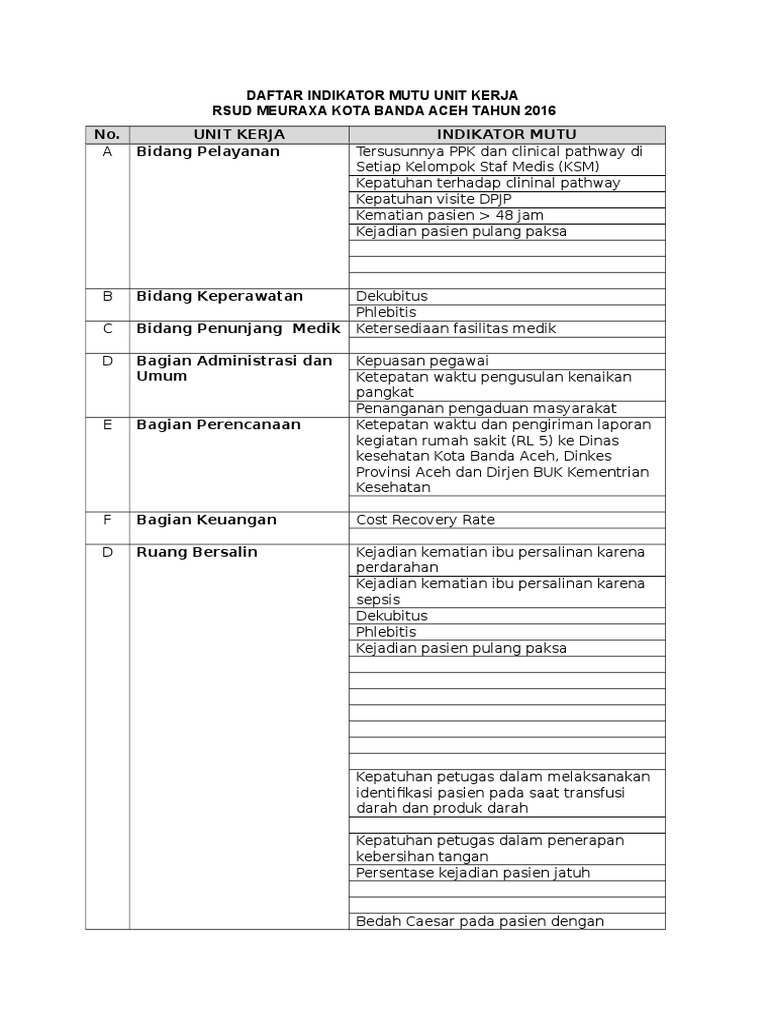 Laporan pelaksanaan validasi data indikator mutu di rumah sakit paru dr. Angka kejadian rm lebih dari satu. Home laporan laporan indikator mutu. Indikator mutu rumah sakit adalah ukuran kuantitatif yang diukur untuk lebih memahami mutu pelayanan di rumah sakit. Laporan indikator mutu 2019. Goenawan partowidigdo cisarua bogor triwulan iv 2017 jalan raya puncak km 83 kotak pos 28 cisarua bogor 16750 telp.