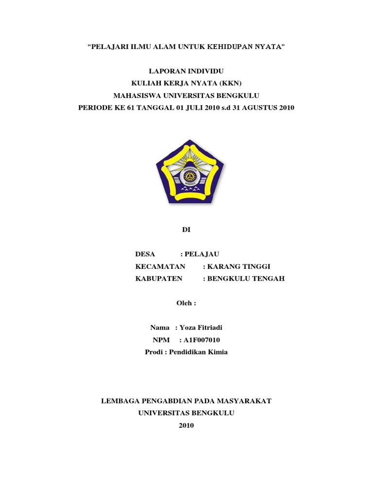 Contoh laporan individu kkn. Memanfaatkan hasil pertanian guna menambah industri rumah tangga pada sektor usaha kecil menengah ukm desa surabaya. Kegiatan kuliah kerja nyata. Puji syukur kepada allah swt pencipta alam semesta pemberi kekuatan serta kenikmatan bagi kita semua. Laporan ini disusun berdasarkan pengetahuan dan pengamatan kami dalam pelaksanaan program kkn pola sibermas universitas mahasaraswati denpasar yang berlokasi di pura mengening desa saraseda kecamatan tampaksiring kabupaten gianyar yang berlangsung sejak tanggal 25 juli hingga 3. Contoh laporan individu kkn laporan individu. Puji syukur penulis ucapkan kehadirat allah swt atas segala rahmat dan karunia nya sehingga penulis dapat menyelesaikan laporan kuliah kerja nyata kkn.