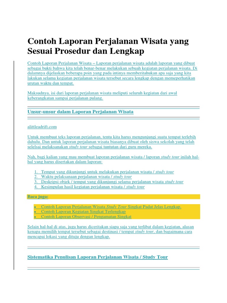 Contoh Laporan Perjalanan Wisata Study Tour Singkat Padat