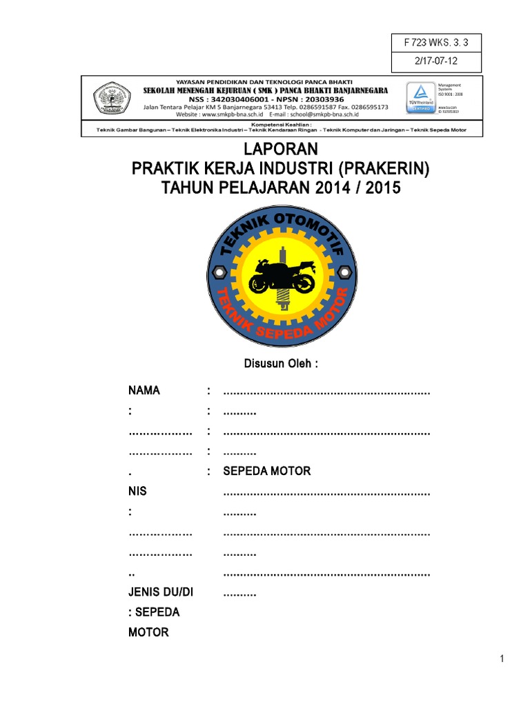 Contoh laporan prakerin tsm. Contoh laporan untuk kamu yang masih yang masih bingung dalam membuat laporan pkl atau prkerin silahkan simak artikel berikut ini karena dalam artikel ini akan dibahas tuntas mengenai pedoman membuat laporan pkl contoh laporan pklprakerin yang baik dan benar. Tune up karburator sepeda motor jupiter z. Laporan prakerin cvt perawatan dan perbaikan system cvt continus variable transmisi pada sepeda motor yamaha mio gt 2014. Karusel sebelumnya karusel berikutnya. Analisis shockbreaker sepeda motor honda final diunggah oleh. Kegiatan prakerin ini biasa di lakukan oleh siswa siswi yang bersekolah di sekolah menengah kejuruan atau sering disebut dengan smk.