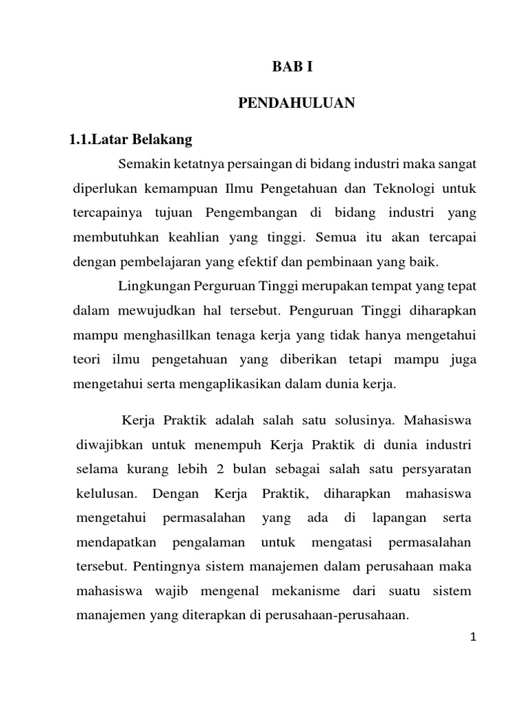 Bab 1 Pendahuluan Pengertian Praktek Kerja Lapangan Pkl