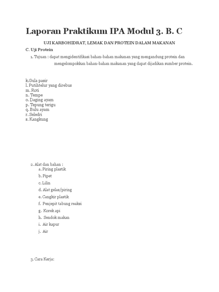 Penulis mohon maaf apabila ada kesalahan dalam penulisan laporan ini. Tujuan umum kegiatan uji coba zat makanan adalah kita dapat mengidentifikasi zat makanan yang terdapat didalam berbagai bahan makanan yang telah ditentukan. Puji syukur kita panjatkan kepada allah tuhan yang maha esa karena atas berkat dan limpahan rahmat nyalah maka kita dapat menyelesaikan laporan praktikum ini dengan tepat waktu berikut ini kami mempersembahkan sebuah laporan praktikum yang berjudul laporan praktikum biologi uji zat makanan yang menurut kami dapat memberikan manfaat yang besar bagi kita untuk mempelajari lebih lanjut. Salah satu contoh makanan yang mengandung karbohidrat adalah nasi. Laporan praktikum uji makanan karbohidrat protein lemak dan glukosa posted on 1548by unknown with 12 comments. Artikel ini telah dibaca 2231551 kali.