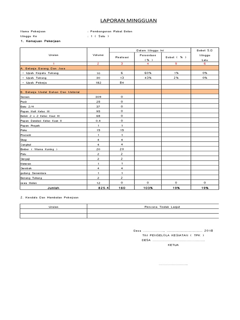 Tulisan ini seputar cara membuat laporan pertanggung jawaban penggunaan dana desa. Hakekatnya adalah laporan bendahara desa dan tim pelaksanan kegiatan dana desa dalam melaksanakan kegiatan yang berhubungan dengan anggaran desa sesuai apbdesa. Padahal jika kita membaca secara rinci di dalam permendagri nomor 20 tahun 2018 tentang pengelolaan keuangan desa. Berikut contoh format surat pertanggung jawaban spj pembangunan yang harus dilampirkan dan bisa langsung didownload. Salam dari desa dari admin formatadministrasidesa sk tpk sk tpk 2019 contoh sk tpk desa contoh sk tpk sk tpk desa 2019 sk tpk desa pdf download sk tpk terbaru sk tim pengelola kegiatan tpk sk tim pengelola kegiatan dana desa contoh sk kepala desa tentang tim pengelola kegiatan sk tim pengadaan barang dan jasa desa sk tim pelaksana. Foto kegiatan infrastruktur desa mulai dari 0 40 dan 100 yang dari sudut pengambilan yang sama.