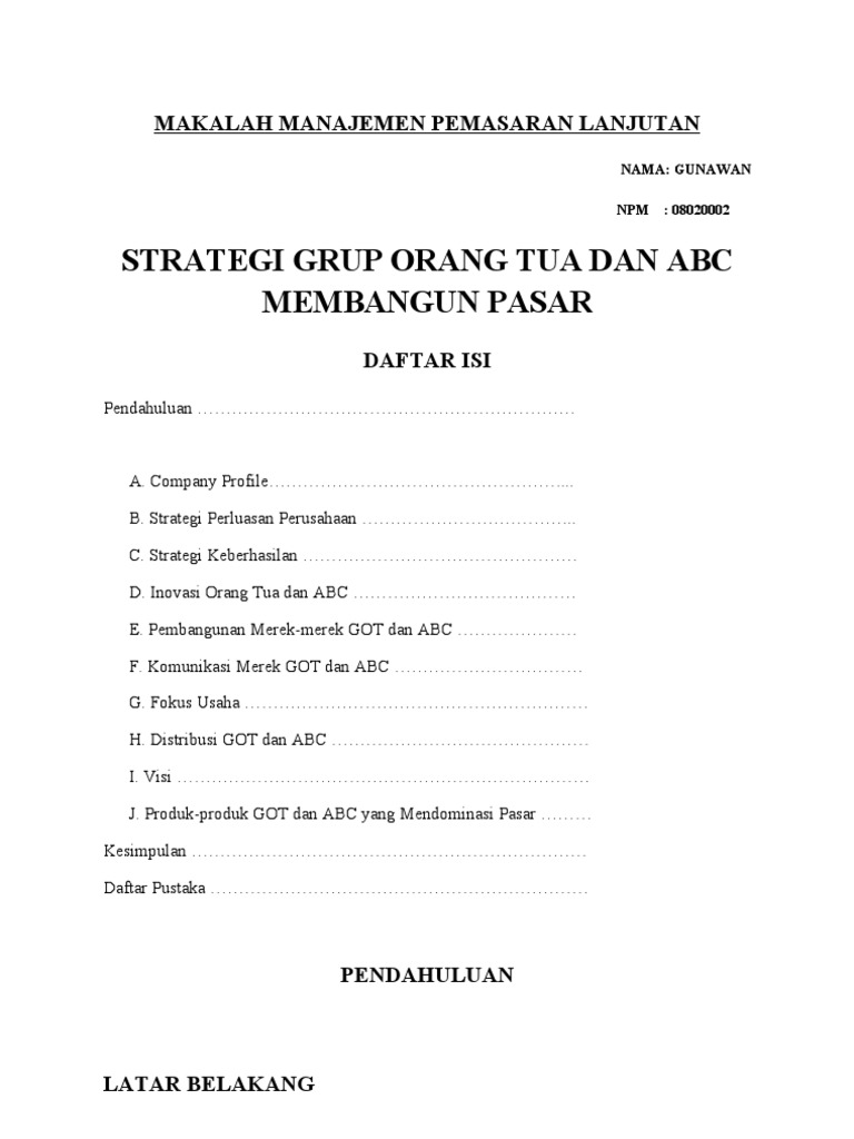 Contoh makalah manajemen pemasaran ini merupakan bagian dari langkah kongkret dalam memperluas wacana pendidikan dan ilmu pengetahuan khususnya ilmu sosial di bidang ekonomi manajemen. Rencana pemasaran tahun berikutnya bagaimana pun harus dapat membuat keseimbangan dalam persediaan dengan cara mempromosikan jenis produk yang sedang mengalami tahap penurunan dalam daur kehidupan produk product life cycle. Contoh iklan layanan masyarakat baris minuman minuman iklan adalah sarana komunikasi penting yang tidak bisa dihindarkan dalam negara yang menganut sistem ekonomi yang berorientasi pasar. Produk kami ialah produk makanan ringan dan produk kami adalah makanan cepat saji yang istimewa. Sebelum membahas 6 strategi pemasaran produk makanan berikut ini ada beberapa pertanyaan penting yang sering di tanyakan para pembaca diantaranya adalah.