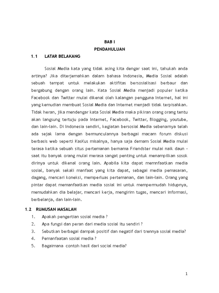 Contoh makalah tentang sosial media. Media sosial sangat banyak menawarkan kemudahan yang membuat remaja betah berlama lama dalam menggunakannya. Pengertian media sosial adalah media online daring yang dimanfaatkan sebagai sarana pergaulan sosial secara online di internet. Media sosial adalah sebuah media online dengan para penggunanya bisa dengan mudah berpartisipasi berbagi dan menciptakan isi meliputi blog jejaring sosial wiki forum dan dunia virtual. Blog jejaring sosial dan wiki merupakan bentuk media sosial yang paling umum digunakan oleh masyarakat di seluruh dunia. Media sosial yang paling sering digunakan oleh kalangan remaja seperti facebook twitter path youtube instagram line dan bbm. Makalah ini berisikan tentang pengertian media sosial dan remaja ciri ciri media sosial pertumbuhan media sosial peran dan fungsi media sosial kelebihan media sosial fungsi media sosial batasan usia remaja tahap tahap remaja ciri ciri perkembangan remaja deskripsi data dalam bentuk tabel hasil data kesimpulan angket pengaruh negatif dan pengaruh positif media sosial dan batasan.