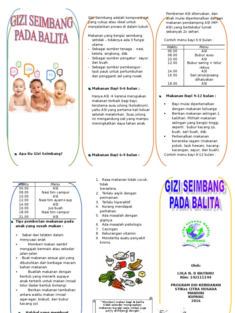 Gizi seimbang adalah susunan makanan seharihari yang mengandung zat zat gizi dalam jenis dan jumlah yang sesuai dengan kebutuhan tubuh dengan memerhatikan prinsip keanekaragaman atau variasi makanan aktivitas fisik kebersihan dan berat badan bb ideal. Seperti nasi roti sereal kentang atau mi.