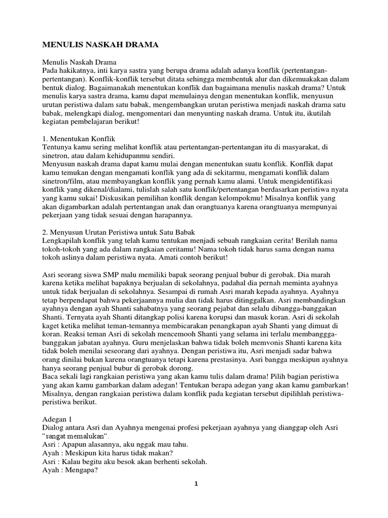 Contoh naskah drama satu babak. Berikut adalah contoh dari drama satu babak. Contoh naskah drama satu babak untuk 5 orang. Drama satu babak adalah drama yang dilakukan pada satu tempatbabaklatar. Drama modern atau kontemporer adalah jenis pertunjukan yang menunjukkan gambaran kehidupan saat ini dengan berbagai masalah yang muncul. Naskah adalah 11 pengertian menurut para ahli jenis tata cara bagian dan contoh untuk pembahasan kali ini kami akan mengulas mengenai naskah yang dimana dalam hal ini meliputi. Teks drama 1 babak jenis drama.