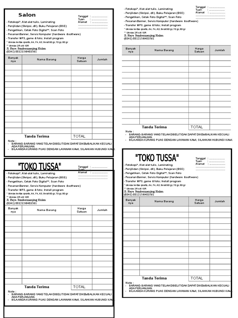 Misalkan 2 ply atau 3 ply. Sekarang sudah cukup banyak contoh nota dengan isi dan desain yang berbeda beda.