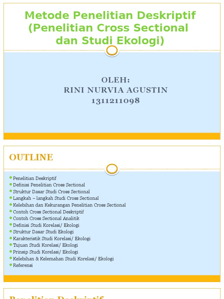 Cross sectional case control dan cohort erlyna nur syahrini. Cross sectional sekilas sudah disinggung di atas bahwa desain cross sectional dapat melibatkan banyak topik dan beragam variable juga dianalisis. Contents1 apa itu cross sectional 2 difinisi penelitian cross sectional3 penelitian cross sectional di berbagai industri4 jenis penelitian. Cross sectional kalau diartikan secara mudahnya yaitu. Untuk melakukan riset longitudinal pertama tama kita melakukan survey dengan kuesioner dan atau wawancara terhadap anak muda yang terpilih sebagai sampel. Contoh judul penelitian cross sectional adalah kualitas menyusui terhadap kelancaran pengeluaran air susu ibu peneliti melakukan pengukuran atau pengamatan terhadap kualitasmenyusui ketiganya diukur secara bersamaan dengan kelancaran pengeluaran asi setelah melihat variabel yang termasuk dalam kualitas menyusui tersebut.