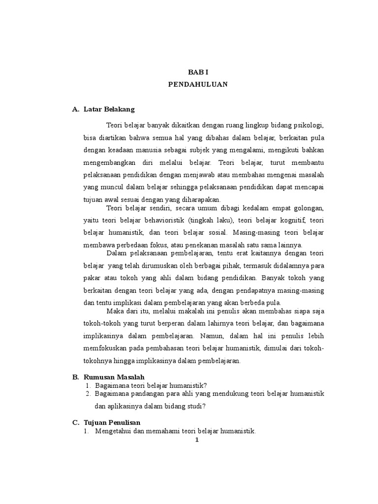 Siswa dalam proses belajarnya harus berusaha agar lambat laun ia mampu mencapai aktualisasi diri dengan sebaik baiknya. Pendahuluan menurut teori humanistik tujuan belajar adalah untuk memanusiakan manusia. Teori belajar sosial social learning theory dari bandura didasarkan pada tiga konsep berikut1. Adapun teori humanisme itu sendiri merupakan konsep belajar yang lebih melihat pada sisi perkembangan kepribadian manusia. Penerapan teori belajar humanistik dalam pembelajaran. Berfokus pada potensi manusia untuk mencari dan menemukan kemampuan yang mereka punya dan mengembangkan kemampuan tersebut 3kemudian teori humanisme banyak mengadopsi prinsip prinsip progresif dan mendapat stimulan dari eksistensialisme yang mencakup keberpusatan pada.