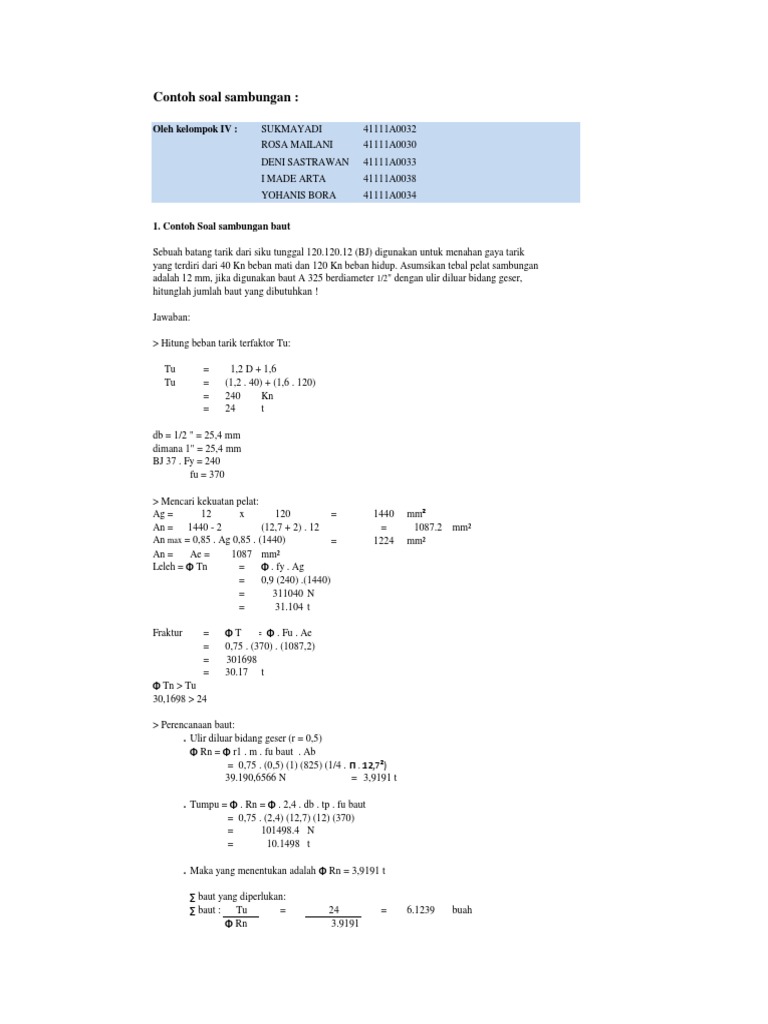 Contoh perhitungan sambungan baut. Sambungan baut baja. Struktur konsol dengan susunan baut dua arah. Contoh perhitungan sambungan baut pada struktur baja. Baut jenis baut yang digunakan tipe baut. Supported by kuncororobertas at yahoocoid link unduh perhitungan sambungan struktur bajacinnection bearing. Rencanakan sambungan balok pada jarak 15 m dari tumpuan a dengan sambungan baut tipe tumpu bj41.