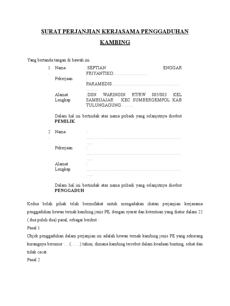 Namun untuk mengesahkan perjanjian kerjsama yang dijalani maka kedua belah pihak sebaiknya tetap menggunakan surat perjanjian kerjasama. Surat perjanjian kerjasama usaha bersama contoh surat perjanjian kerjasama usaha bersama ini dibuat dan disepakati oleh pihak pihak yang ingin melakukan kerjasama dibidang usaha tertentu dimana sistem pembagian keuntungannya berdasarkan bagi hasil sehingga sesuai dengan syariat islam. Contoh surat perjanjian kerjasama melakukan sebuah hubungan bisnis merupakan kegiatan dilakukan oleh kedua belah pihak bisanya salah satu pihak menjadi seorang investor atau pemodal sedangkan pihak satunya lagi merupakan pihak yg mengelola modal tersebut. 15 contoh surat perjanjian kerjasama berbagai bidang sebagai suatu perusahaan yang ingin cepat berkembang maka tentu sebuah perusahaan tidak bisa berdiri sendiri tanpa ikatan dengan perusahaan lain. Hal ini sebenarnya bukan hal yang baru lagi dimana setiap perusahaan tentu ingin bekerjasama dengan perusahaan perusahaan lain agar bisa saling menguntungkan. Kerjasama tersebut bisa dilakukan oleh dua orang atau dua pihak bahkan juga lebih.