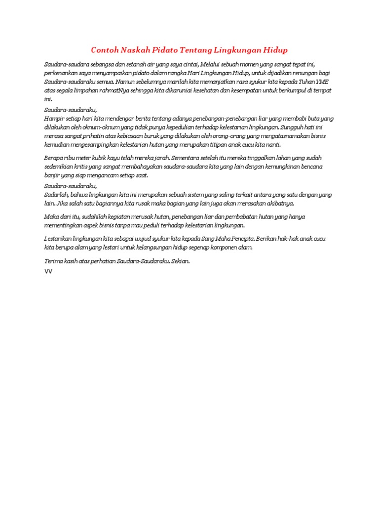 Wbselamat pagi salam sejahtera bagi kita semua. Contoh pidato peduli lingkungan kalau anda saat ini mencari contoh pidato peduli lingkungan maka kamu tinggal dapatkan disini karena ini adalah contoh pidato yang bisa anda rubah sendiri sesuai dengan apa yang kamu sampaikan mudah sekali tinggal mengikuti alur contoh pidato peduli lingkungan yang sudah ada di sini dengan contoh pidato peduli lingkungan maka anda bisa membuat sendiri.