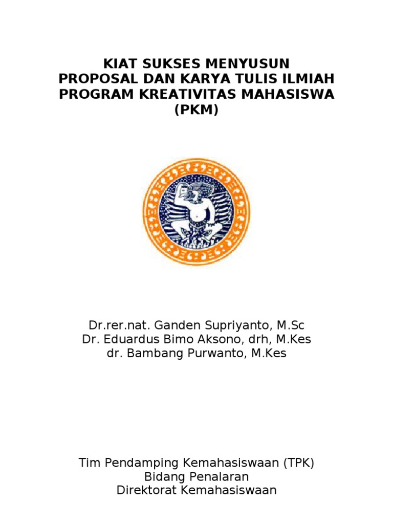 Proposal di bawah ini adalah proposal pkm tahun tahun sebelumnya hanya untuk referensi secara substansi isi kerangka jangan dicontoh karena menggunakan panduan lamalihat di menu download untuk pedoman dan kerangka pkm yang terbaru. 15 proposal pkm lolos april 23 2008 in warta utama uad by webmaster program kreativitas mahasiswa pkm yang diselenggarakan oleh dikti merupakan upaya untuk mendorong agar mahasiswa meningkatkan kreativitasnya melalui beberapa jalur antara lain.