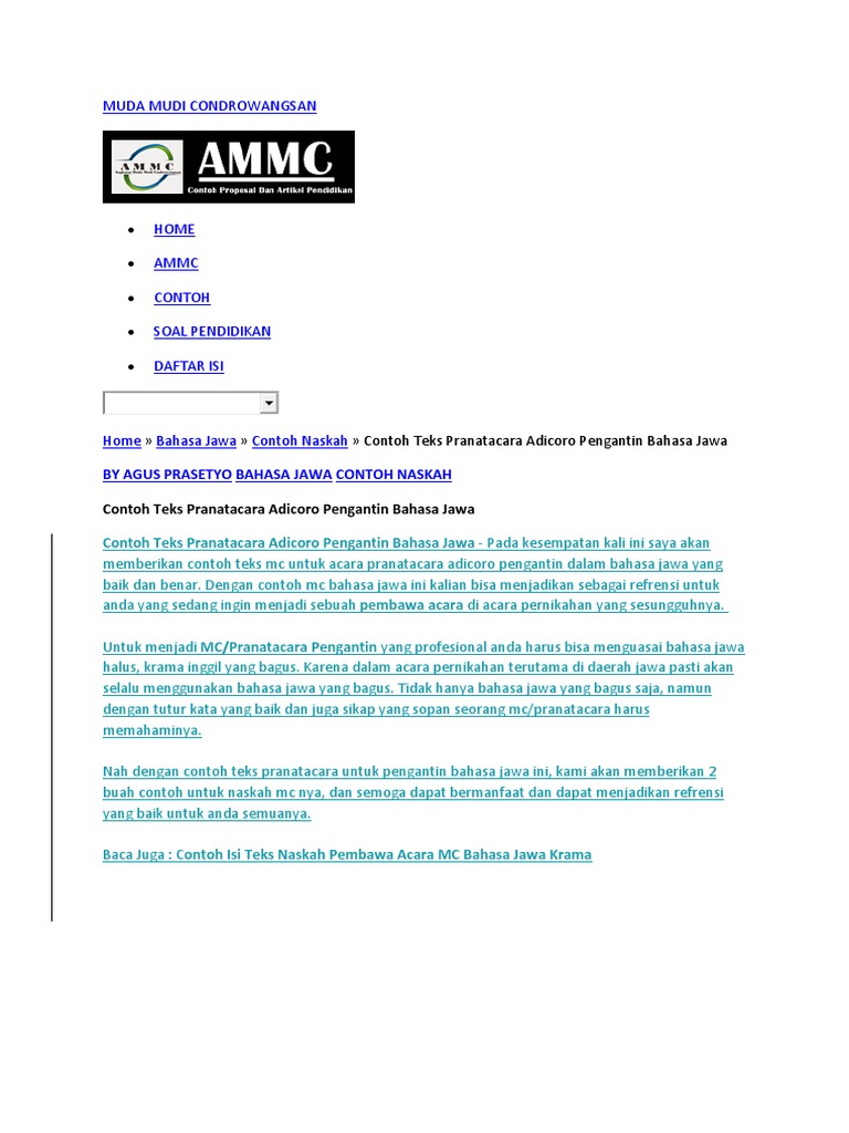 Unknown jumat 26 februari 2016 143100 wib. Contoh teks naskah untuk mc atau pembawa acara pengajian dalam bahasa jawa materi ini saya posting sebagai pengalaman saya untuk mempersiapkan materi ketika menjadi mc atau pembawa acara dalam pengajian dalam rangka menyambut bulan suci romadhan. Wacana narasi diskripsi eksposisi argumentasi dan persuasi. Pada kesempatan kali ini kami akan memberikan contoh contoh teks mc pengajian bahasa jawa yang bisa bisa anda jadikan referensi sebelum melakukan pidato. Contoh pranatacara perpisahan pranatacara perp i sahan sma n 1 wates assalamu alaikum wr. Contoh teks mc pernikahan manten bahasa jawa krama pada kesempatan kali ini saya akan memberikan contoh untuk teks mc dalam suatua pernikahan atau kalau dalam bahasa jawa sering di katakan manten dengan bahasa jawa yang baik dan benar.