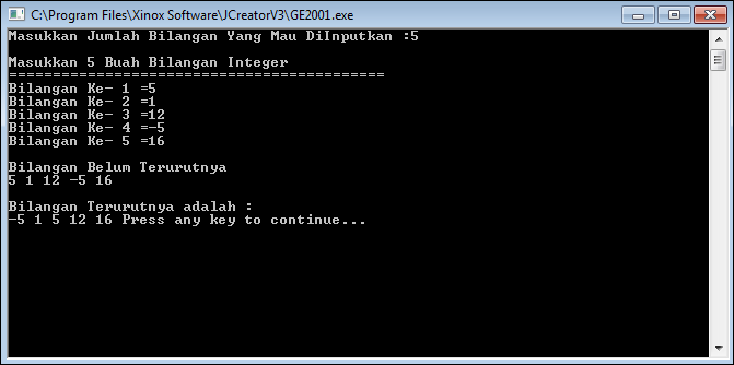 Bubble sort adalah algoritma sederhana yang dapat digunakan untuk melakukan pengurutan data baik secara ascending maupun descending. Untuk mengetahui proses pengurutan ada dibagian kesimpulan. 5 komentar untuk contoh program sorting bubble sort insertion sort selection sort bahasa java balas. Pengertian bubble sort dan contoh program bubble sort pada c unknown thursday february 20 2014. Kita bisa mengurutkan nilai masukan tersebut dari yang terbesar ke yang terkecil atau dari yang terkecil ke yang terbesar. Namun jika anda butuh program untuk mengurutkan sebaliknya atau secara menurun kami akan memberikan contoh program nya dan hasil outputnya juga.