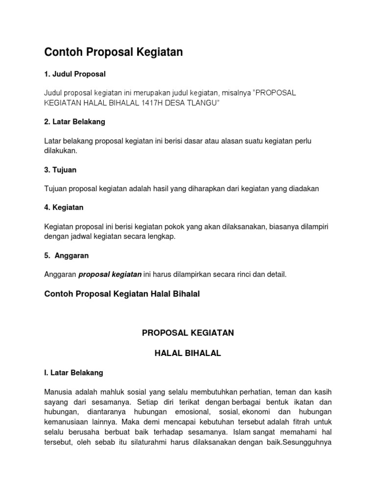 Latar belakang latar belakang proposal kegiatan ini berisi dasar atau alasan suatu kegiatan perlu dilakukan. Home without label contoh proposal kegiatan halal bihalal lengkap. Manusia adalah mahluk sosial yang selalu membutuhkan perhatian teman dan kasih sayang dari sesamanya. Semoga kegiatan ini dapat berjalan sesuai harapan kami semua. Halal bi halal. Kali ini admin postingkan contoh proposal kegiatan halal bi halal silahkan simak di bawah ini.