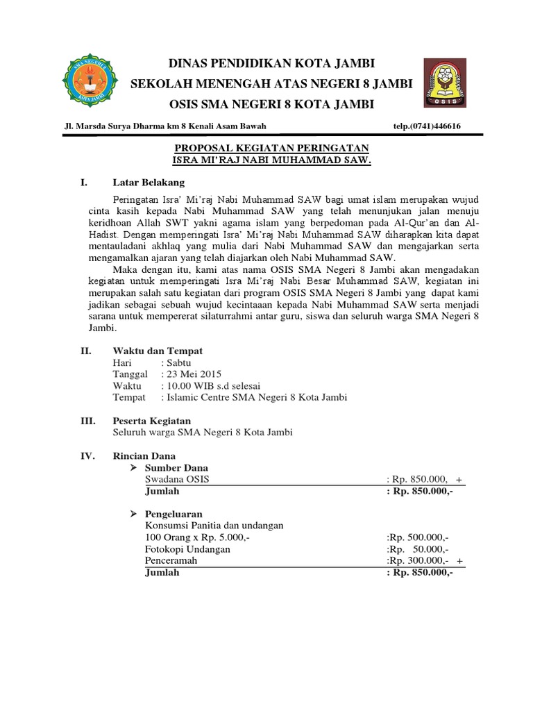 Kemampuan smp negeri 2 puhpelem dalam menjaga. Demikian proposal ini kami buat dengan harapan kegiatan phbi isra miraj nabi muhammad saw di tahun 201 7 ini berjalan lancar sukses dan mendapat apresiasi penuh dari semua pihak. Jamanis kabupaten tasikmalaya 46175 nomor.