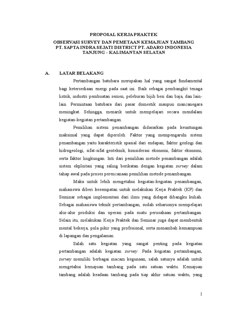 Contoh proposal pengajuan praktek kerja lapangan pkl proposal pengajuan praktek kerja lapangan. Unknown 23 oktober 2017 0917. Contoh proposal kerja praktek 1. Proposal kerja praktek pt pertamina geothermal energy dari hasil survey dilaporkan bahwa di indonesiaterdapat 217 prospek panasbumi yaitu di sepanjang jalur vulkanik mulai dari bagian barat sumatera terus ke pulau jawa bali. Proposal kerja praktek pt. Jalan veteran iii banjar waru ciawi bogor jawa barat.