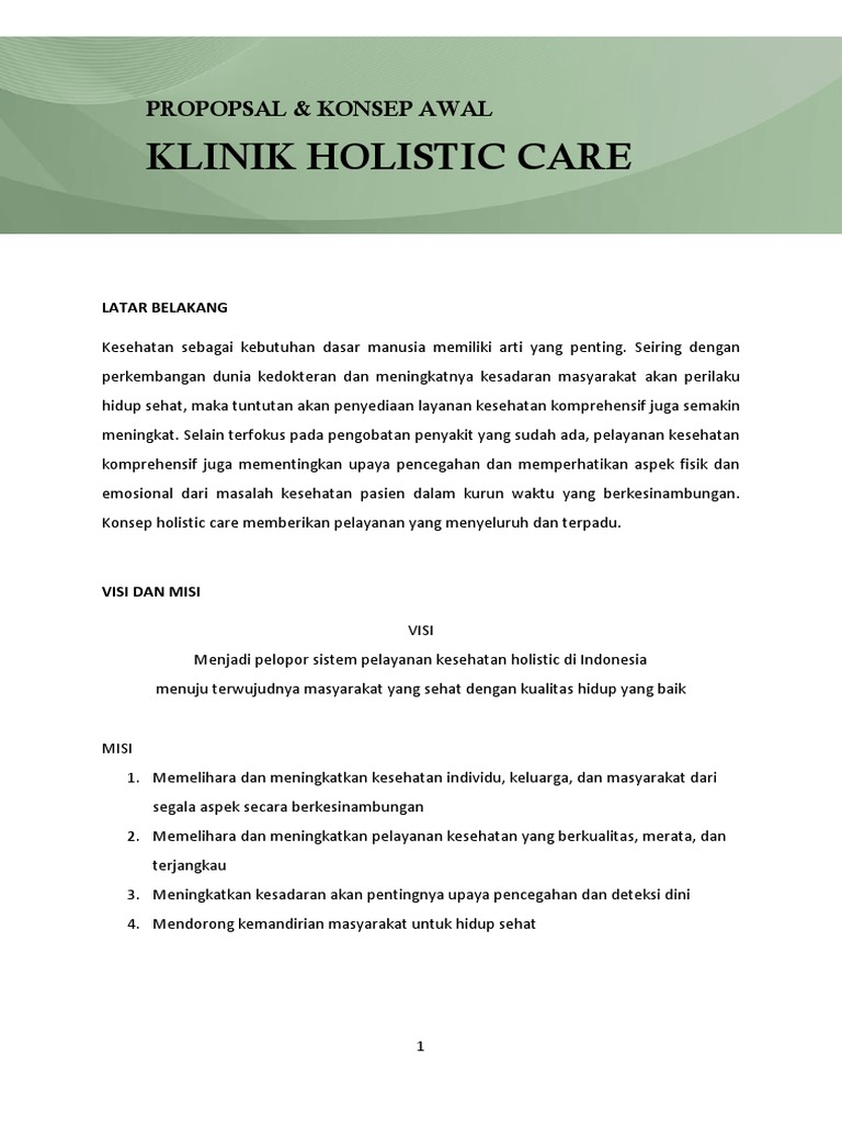 Contoh proposal pendirian klinik pratama. Akta pendirian dan perubahan kantor pusat dan kantor cabang jika ada fotokopi. Bangunan dan ruangan bangunan yang direncanakan untuk klinik pratama rawat jalan unsoed merupakan bangunan permanen bekas kampus yang akan direnovasi menjadi. Proposal rencana pendirian klinik dan dilengkapi dengan. Struktur organisasi klinik daftar ketenagaan tenaga medis dan non kesehatan. Dengan bergai macam cara. Proposal klinik pratama rawat jalan.
