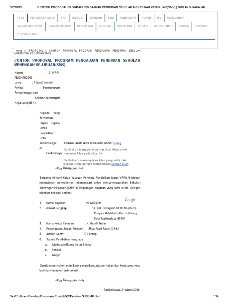 Berdasarkan permendikbud tersebut pendirian sekolah baru sd smp sma smk baru dapat dilakukan oleh. Assalamualaikum wrwb subhanallah sangat bermanfaat kebtulan semalam ada tetanggga profesinya seorang dosen kebetulan saya berkerja di bidang pendidikan juga jadi tetangga tadi minta tolong untuk di carikan contoh contoh proposal untuk pendirian sekolah karna dia ada rencana mau mendirikan sekolahalangkah bersyukurnya kami kalau akhi berkenan memberikan softfilenya mohon dengan. Proposal sponsorship sering digunakan sebagai sarana untuk menggalang dana dalam pelaksanaan suatu event atau kegiatan tertentu. Softgaleri adalah blog yang berbagi informasi download modul pkb semua mata pelajaran sekolah smpmts edisi revisi 2017 modul pkb smp revisi 2017pendidikan guru smp aplikasi dan administrasi guru yang mana file berikut ini adalah kumpulan dari berbagi sumber tentang contoh proposal pendirian sekolah baru sma yang bisa bapakibu. Berikut ini adalah contoh proposal sponsorship sederhana yang bisa digunakan. Download contoh proposal pentas seni.