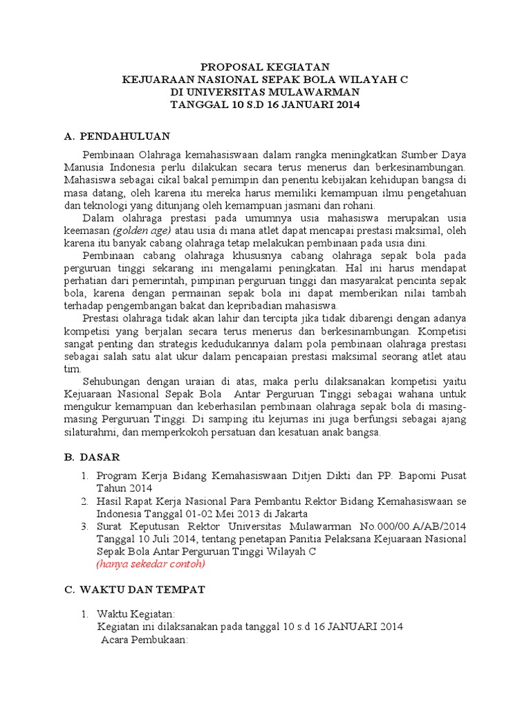 Contoh proposal sepak bola resmi. Yang merupakan perutusan bola sbobet indonesia terpercaya zeusbola sudah berkerja sama dengan kongsi sbobet. Contoh proposal permohonan sponsorship turnamen sepak bola pada kesempatan kali ini saya akan memberikan informasi mengenai pembuatan contoh proposal untuk permohonan sponsorship di turnamen sepak bola yang bagi sobat semua sedang ingin mengadakan turnamen sepak bola maka dengan artikel ini contoh proposal permohonan sponsorship dapat kalian contohkan ataupun hanya menjadikan sebuah refrensi. Olahraga terpopuler di dunia ini berkembang dengan begitu pesatnya. Bukan saja di kota kota besar namun olahraga sepak bola juga mulai masuk ke daerah desa desa dan pelosok kampung. Untuk itu dalam hal ini pemerintah dan tokoh masyarakat sebagai bagian terpenting masyarakat mempunyai tugas tak kecil dalam mengembangkan dan menumbuhkan sepak bola yang sportif maju dan ramah menuju prestasi yang bagus. Untuk itu dalam hal ini pemerintah dan tokoh masyarakat sebagai bagian terpenting masyarakat mempunyai tugas tak kecil dalam mengembangkan dan menumbuhkan sepak bola yang sportif maju dan ramah menuju prestasi yang bagus.