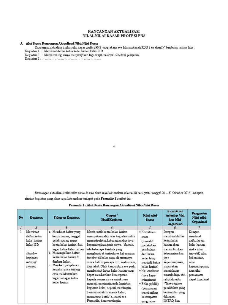 Contoh rancangan aktualisasi dan habituasi latsar cpns. Rancangan aktualisasi nilai nilai dasar pns golongan iii. Kumpulan pengetahuan terkait dunia pendidikan baik itu pendidikan di sekolah sd smp sma kuliah pendidikan di rumah dan masyarakat.