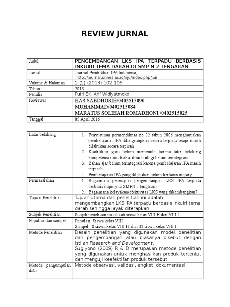 Bahkan kami yakin banyak dari anda yang mungkin pernah melihat contoh review jurnal nasional maupun contoh review jurnal internasional yang dilakukan oleh reviewer berpengalaman. Contoh jurnal salah satu tugas dari seorang mahasiswa dan dosen adalah menulis karya ilmiah salah satunya adalah jurnal. Nah untuk itu penulis akan membagikan cara membuat jurnal skripsi umum contoh karya tulis ilmiah dan masih banyak lagi. Meningkatkan kompetensi guru sma dan sederajat melalui pelatihan. Review sendiri sebenarnya merupakan proses berupa evaluasi dari hasil publikasi yang dikirimkan jasa pelayanan hingga pertunjukkan seni.